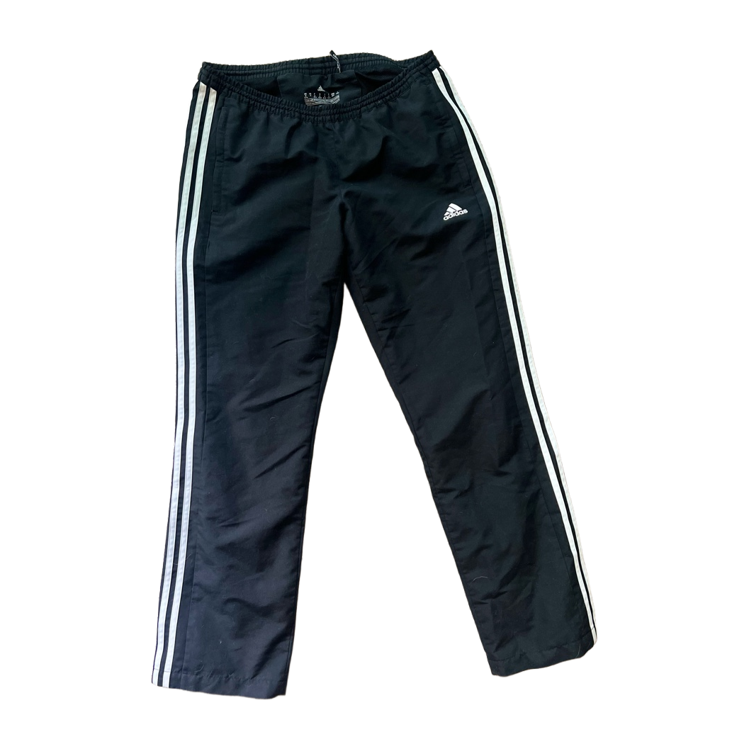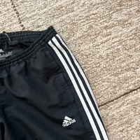 Siistikuntoiset Adidas tuulihousut, koko l. Lahkeissa vetoketjut. Matalahko vyötärö ja väljät lahkeet. Lahkeen sisämitta 78cm ja vyötärönympärys venyttämättä noin 84cm