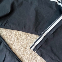 Adidaksen mustat urheiluhousut valkoisilla raidoilla.