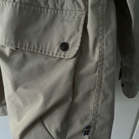 Fjällräven G-1000 takki. Koko L. Vähän käytetty, joten moitteettomassa kunnossa. Huppu, jonka saa sisälle. Vyötärö kiristettävissä. Paljon taskuja edessä ja sisällä.