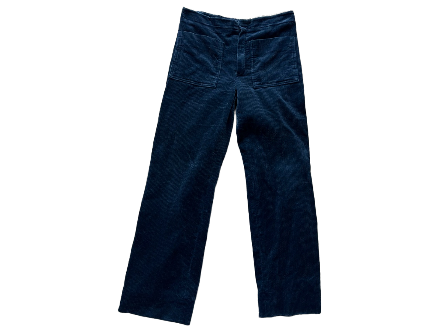Marimekon Vintage housut, tummansinistä vakosamettia. Koko s, lahkeen sisämitta 72cm ja vyötärönympärys 72cm. Suorat lahkeet. Materiaali ei jousta