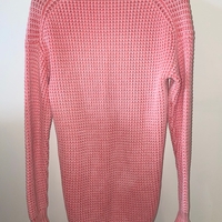 Pitkä, paksu neule, käsinpesu-merkinnät, pehmeä rakenne.