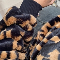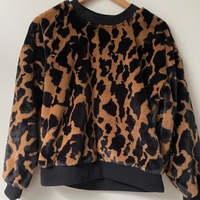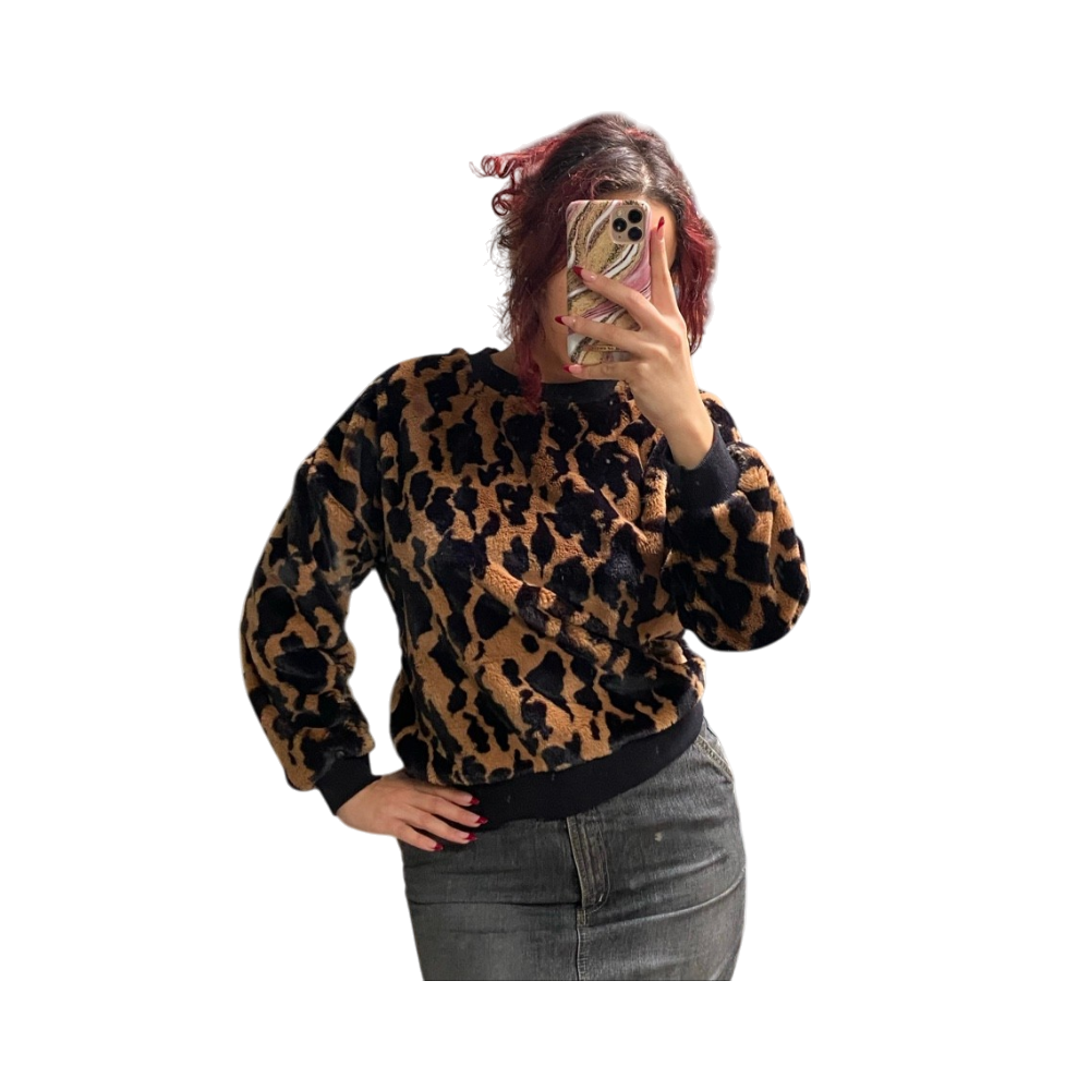 Soft faux-fur leopard print sweatshirt, ribbed cuffs and hem.