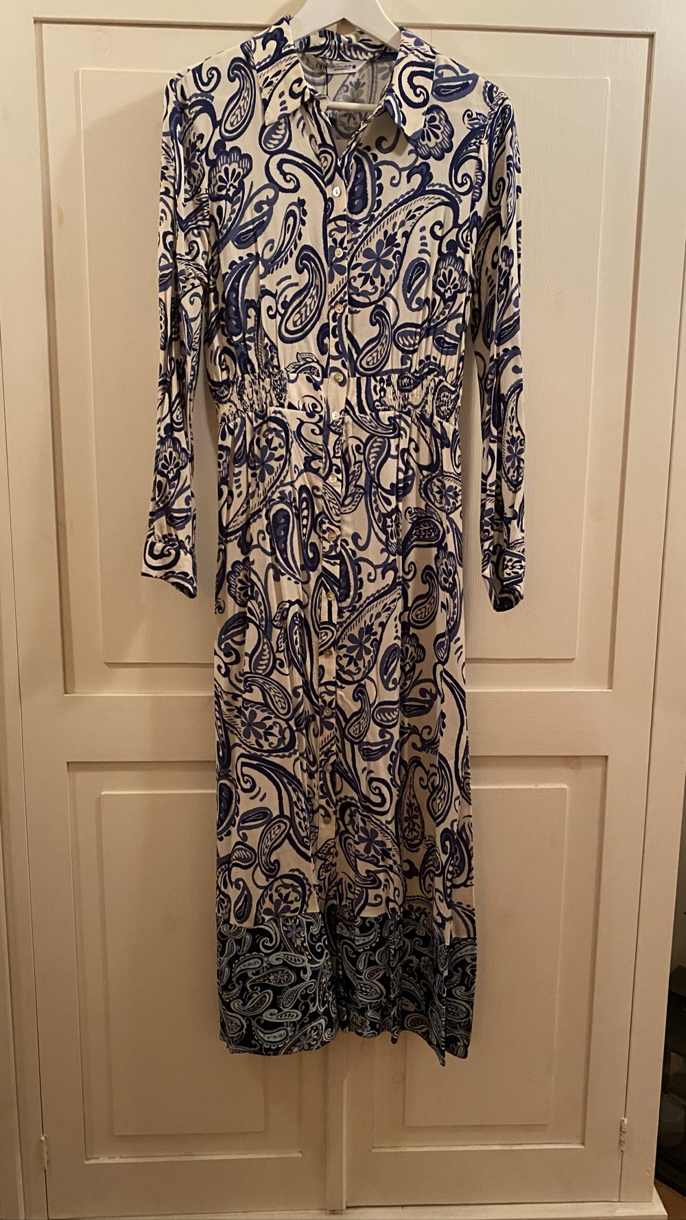 Ihana paisleykuvioinen maksimekko, hieno yksityiskohta.