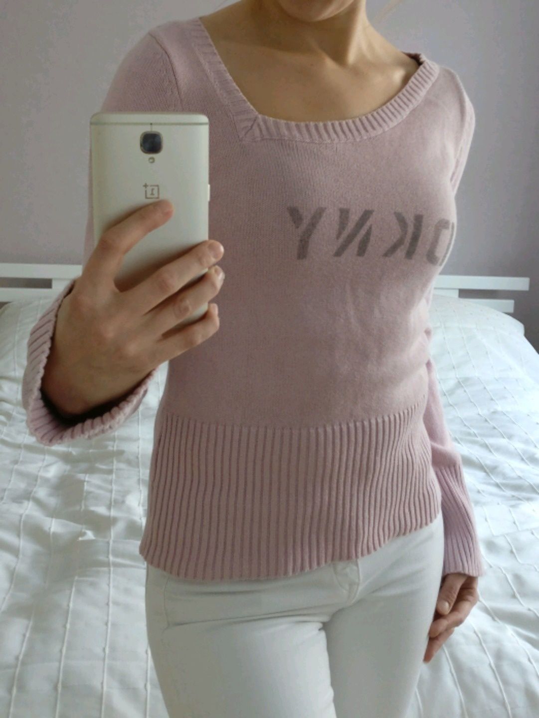DKNY Jeans puuvillaneule. Ostettu vuosia sitten ja unohtunut käyttämättömänä kaappiin. Lapussa koko M, mutta mielestäni enemmän S kokoa. Hihat levenevät jnkv.
