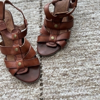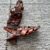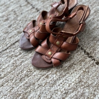 Oikein siistikuntoiset nahkaiset sandaalit, koko 5 1/2, 38,5. Pohjan pituus noin 25cm. Korko 6cm