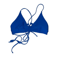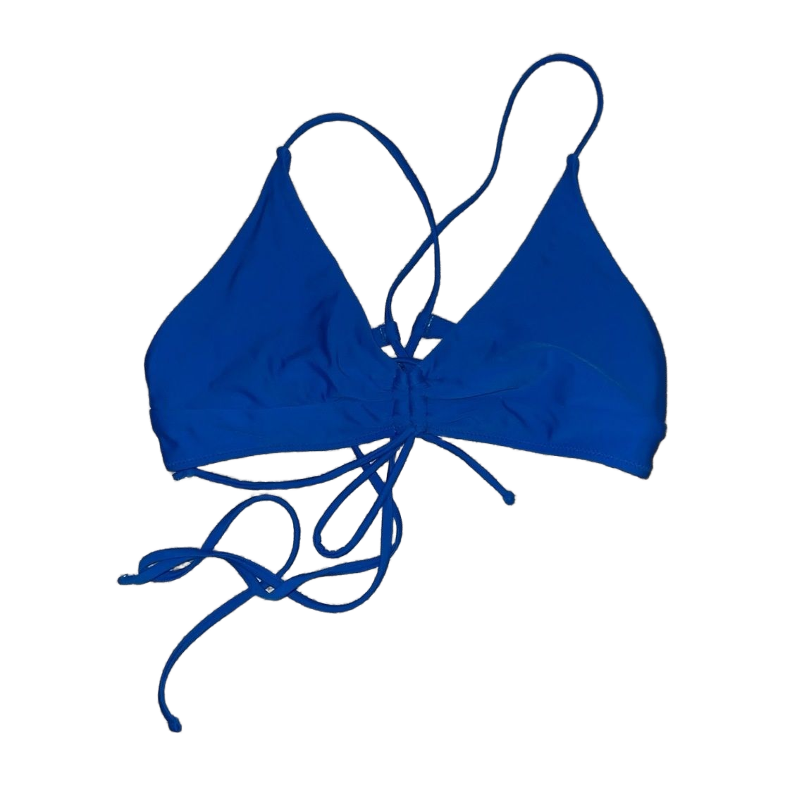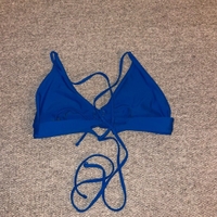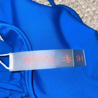 Rihoas sähkönsininen bikiniyläosa. Ympärysmitassa paljon säätövaraa nauhojen ansioista, kuppi ehkä enemmän iso M/pieni L. Pehmusteet hukkuneet jonnekkin, käytetty vain muutaman kerran, pesty.