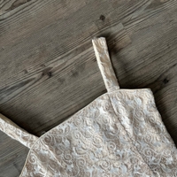 Upea Vintage pitsimekko, koko us 10, made in USA. Menisi täydellisesti myös häämekkona, vuoritettu eli ei näy läpi. Pituus 97cm, kai kai mitta 43cm ja vyötärönympärys noin 74cm. Hyvässä kunnossa