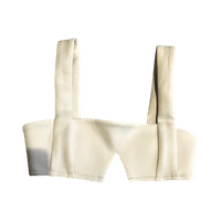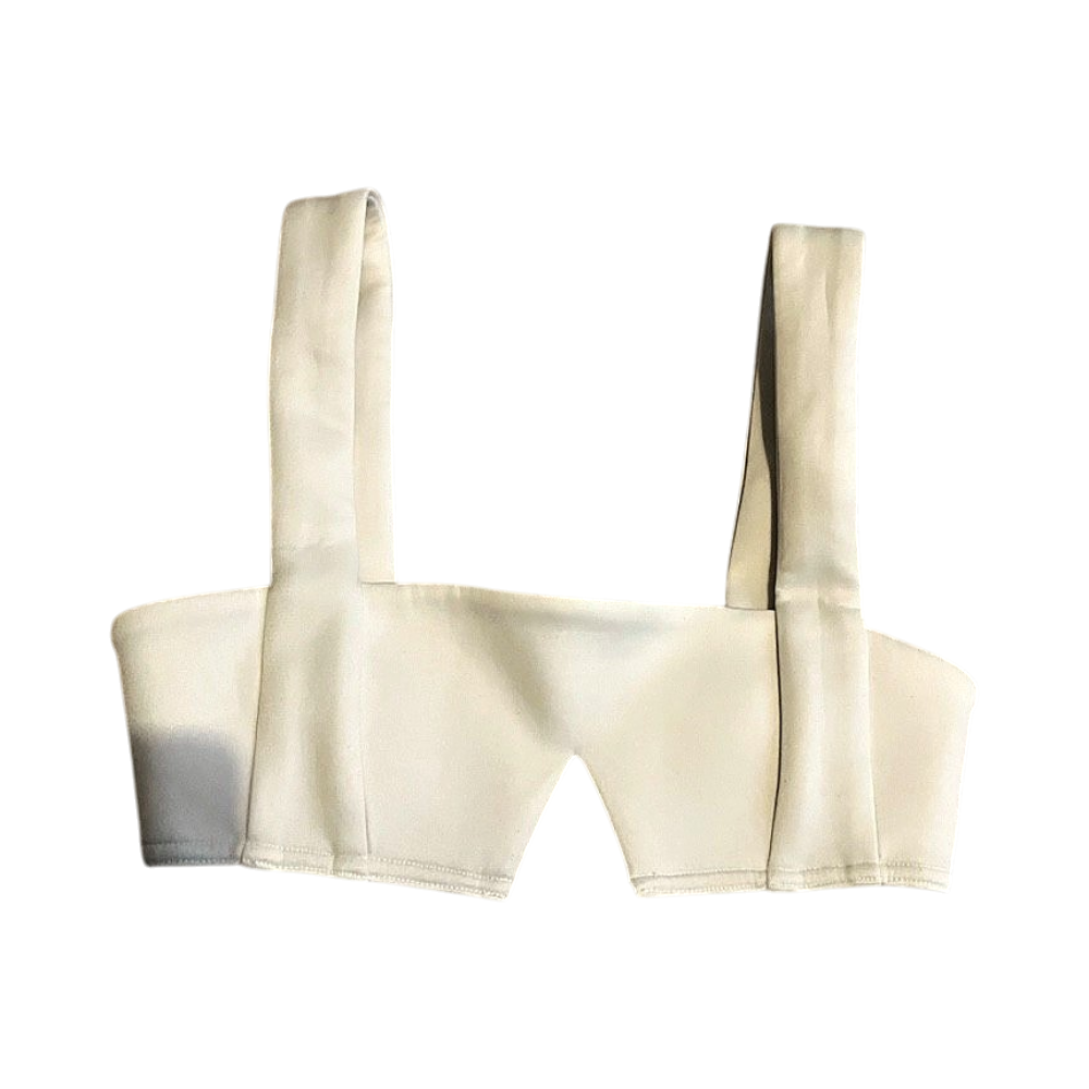 Lyhyt valkoinen cut-out toppi, leveät olkaimet.