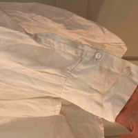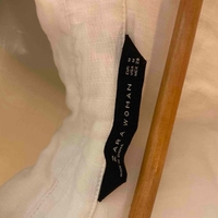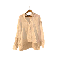 Oversized, slightly asymmetrical hem, boxy fit. Not sure if 100% linen but looks and feels like it! At least a blend. Worn but no flaws.