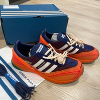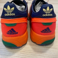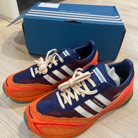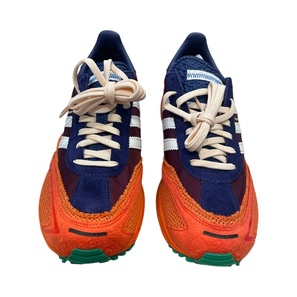 Adidas Originals teams up once again with Bad Bunny to design these 'adiZero SL 72' sneakers, which were first seen on Olympic gold medalist Noah Lyles at the Formula 1 Las Vegas Grand Prix. They're constructed from a combination of suede, mesh, shell and leather. (Burgundy shell, bright-orange, white and navy leather, bright-orange mesh, navy and bright-orange suede, navy rubber)