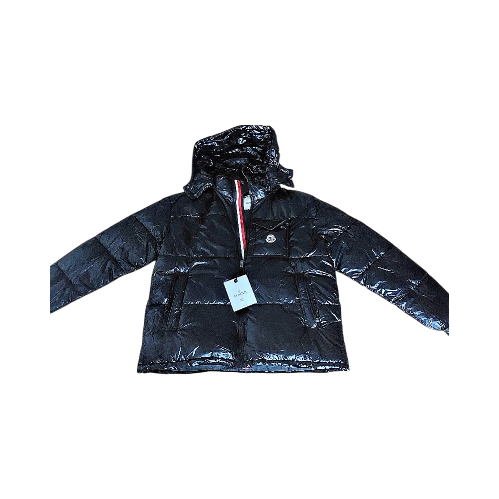 Black men's down puffer jacket, Moncler label, size 2XL but fits like a L