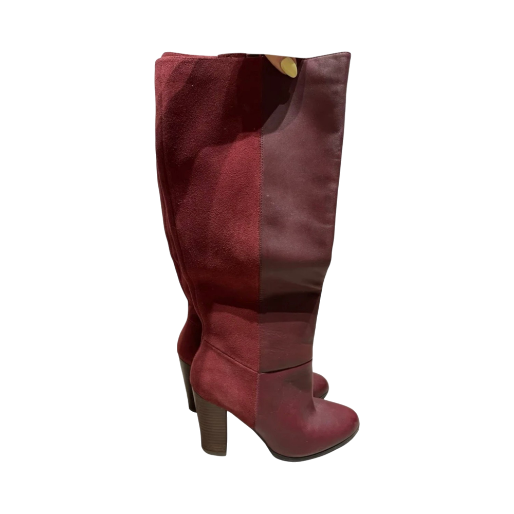 Yli-polven nilkkureiden tyyppiset saappaat korkolla, hyväkuntoiset.