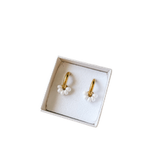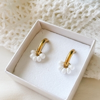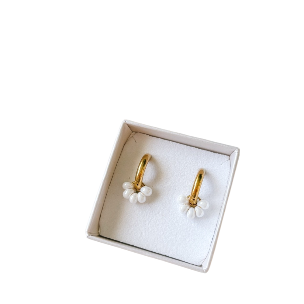 Kultaiset renkaat valkoisilla helmillä, söpöt ja sirot.