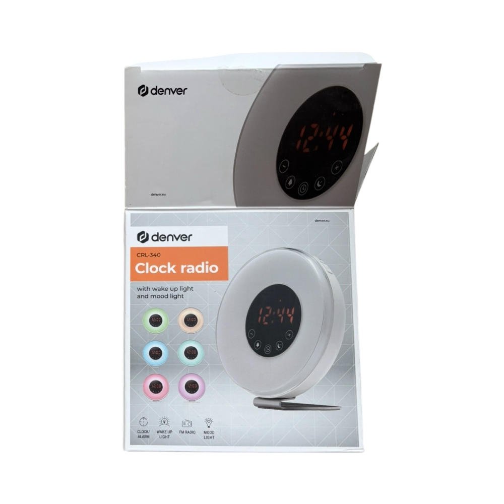 Herätysvalo ja FM-kelloradio, mood-valaistus, toimii verkkovirralla.