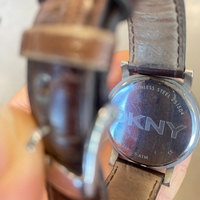 Nahast hõbedane roostevabast terasest DKNY käekell. Vajab patarei vahetust.