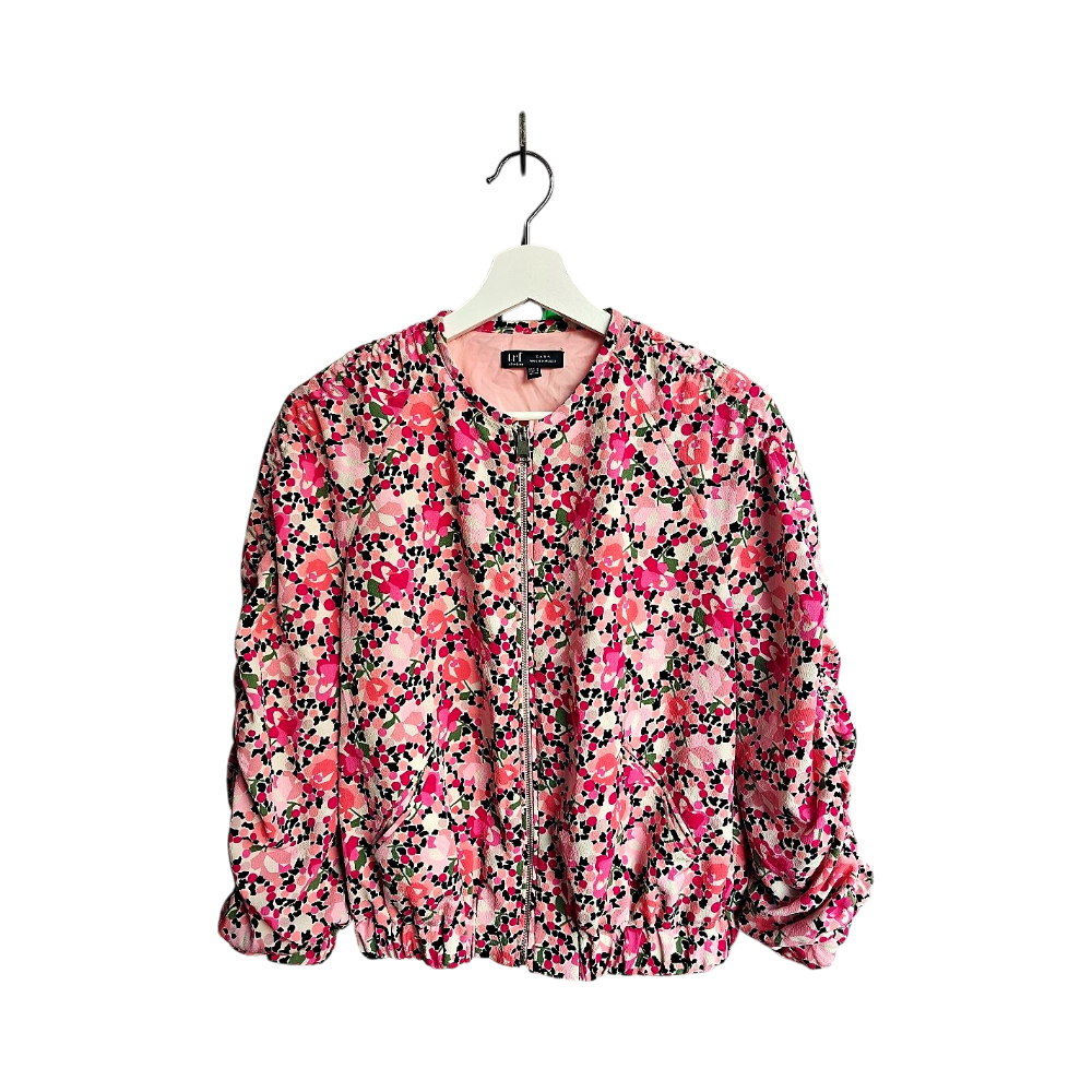 Zara trf pink / multicoloured light flower jacket. Size S, fits S/M size. Great, like new condition. Ruched sleeves.