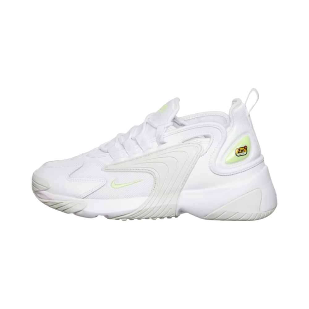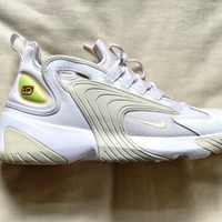 Vänän käytetyt Nike Zoom 2K lenkkarit sävyssä white/barley volt/ghost aqua (valkoinen, vaaleanvihreä). Muutama pieni värjäymä mutta muuten erittäin siistissä kunnossa
