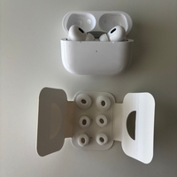 Langattomat nappikuulokkeet latauskotelolla ja vaihdettavilla tipsillä.
