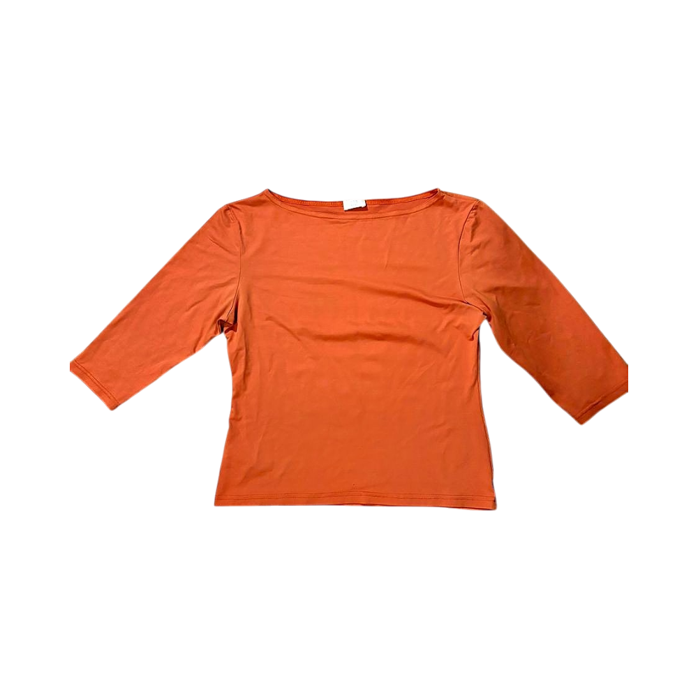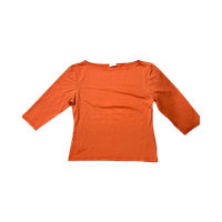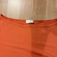 Oranssi paita, jossa puolipitkät hihat. Liukasta kangasta. Hyvässä kunnossa!