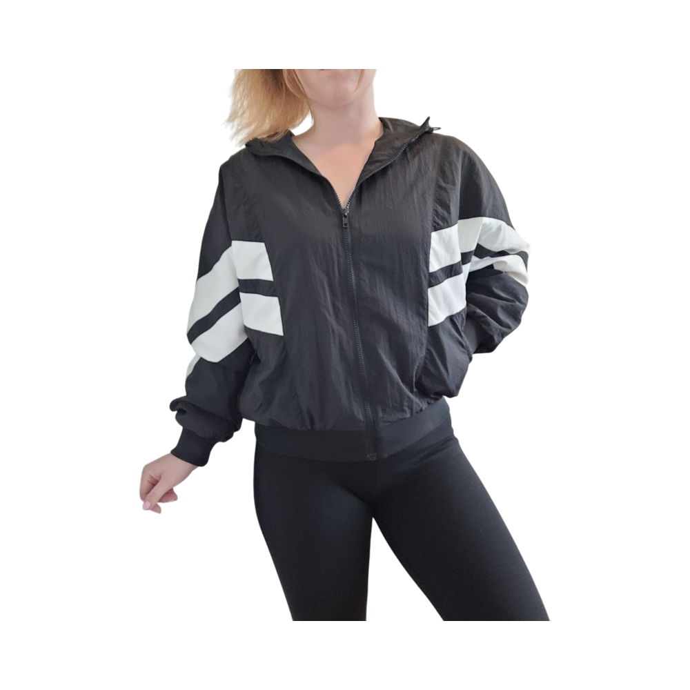 Batwing-hihainen, hupparityylinen lyhyt välikausitakki. Edessä kaksi avointa taskua. Kokolapussa S, mut reilun kokoinen, joten sopii ihan hyvin myös M-kokoselle!