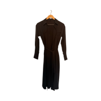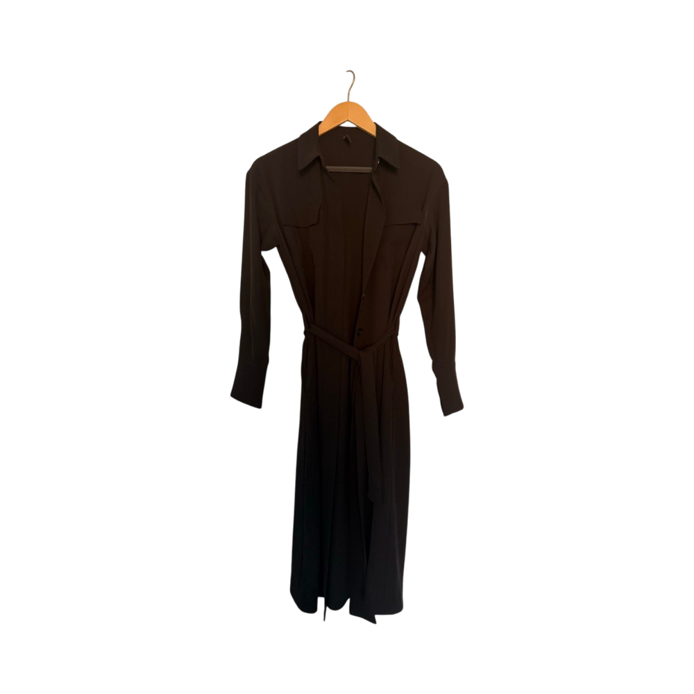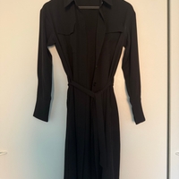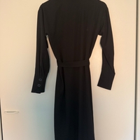 Pitkä musta paitamekko vyöllä, siisti kunto.