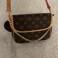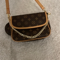 Väri: ruskea/monogram kuviointi, kullanväriset metalliosat.