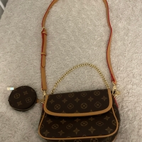 Erittäin hyväkuntoinen, vain pari kertaa käytetty olkalaukku. Mukana irrotettava pitkä hihna sekä pieni pyöreä lisätasku. Laukkua voi käyttää sekä olkalaukkuna että crossbody-tyyliin.