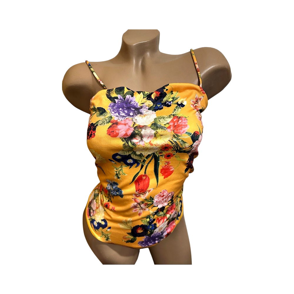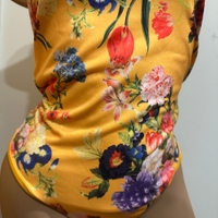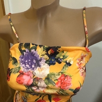 Bikbok S keltainen kukkakuvioinen bodysuit