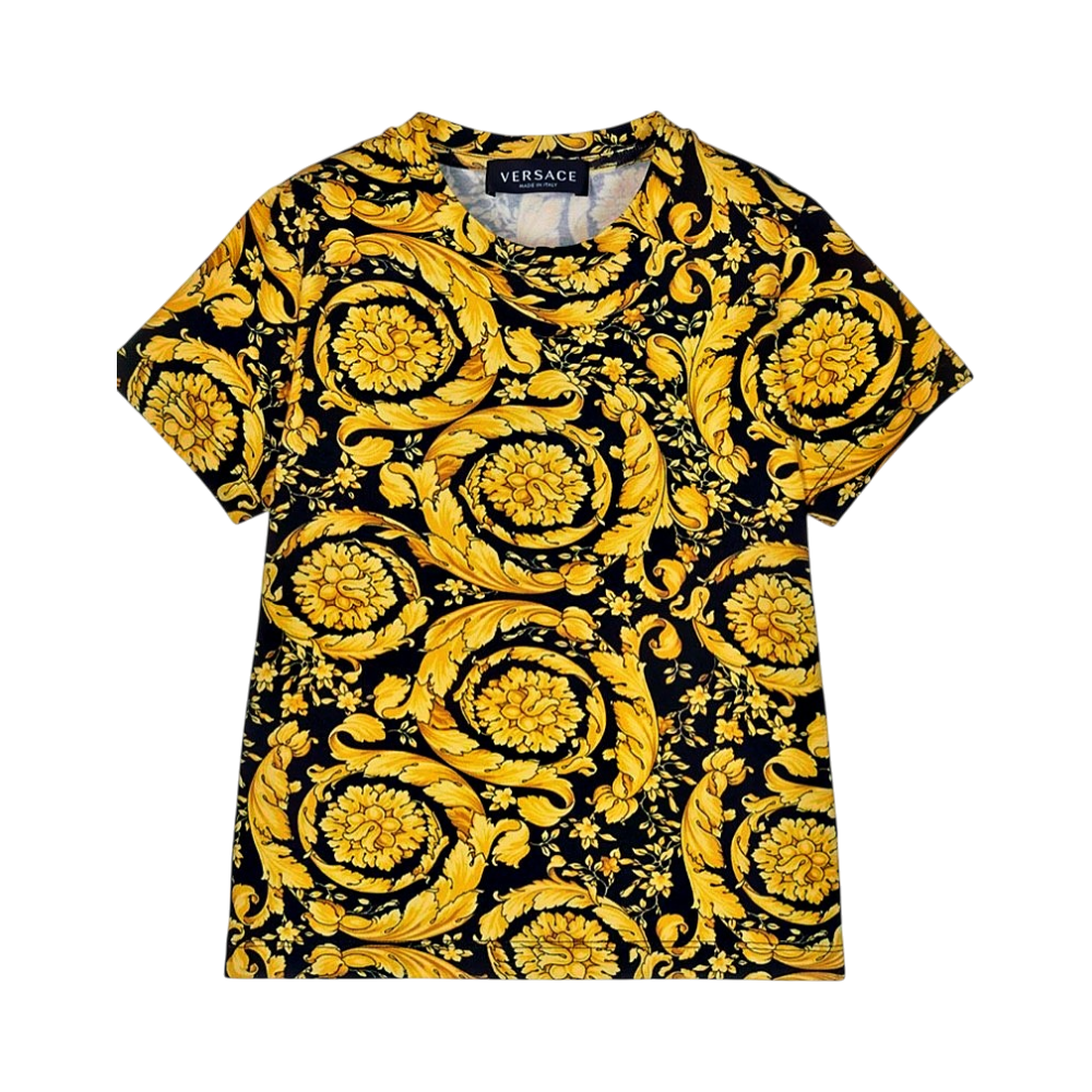 Versace-merkkinen kulta musta kuvioitu paita, koko 12A