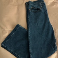 Tailored made mid-rise jeans. Wide leg style with a little bit of flare.