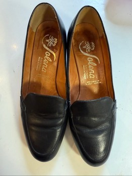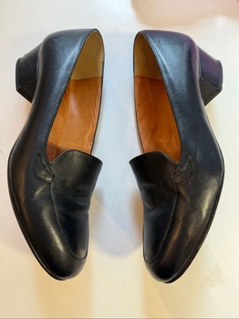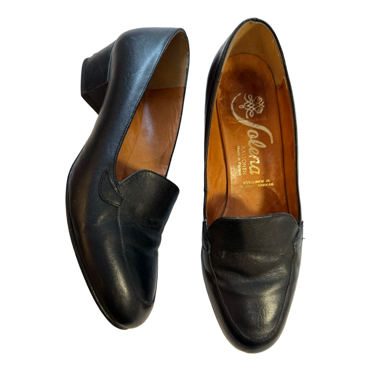 Black leather Aaltosen Solena pumps with a small heel. Made in Finland.