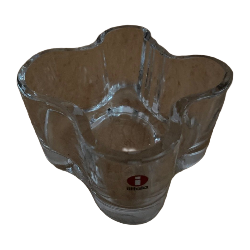 Aalto's classic candle lantern beautifully clear. Alvar Aalto designed his famous collection of freely blown glass objects in 1936. Even today Iittala's master glassblowers create by hand legendary vases that echo Aalto's idea: a flowing organic form that lets the user decide its purpose. Size 55 mm.