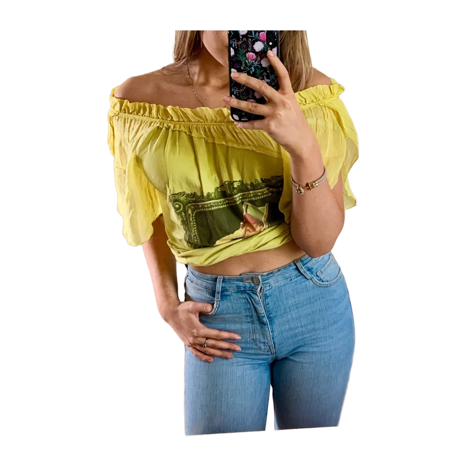 Lovely bright yellow top, stunning sleeves! Bought in Italy. Equivalent to new!