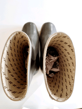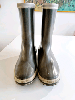 Practical, genuine Nokian classic rubber boots. Used, signs of wear. Suit excellently as city wellies or for festivals. A reflective tape surrounds the top of the shaft. Patterned rubber sole. Size 37, inner length approx. 25 cm. For me (size 36) with a wool sock slightly big. Shaft height 23 cm, heel 2 cm. Color dark green-gray.
