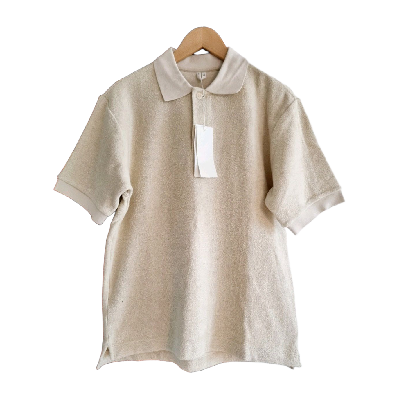 Really lovely toweling pique shirt in sand color for everyday, staying at home, cottage, after the sauna, etc. I have this in another color and it is one of my favorite shirts. Thick, comfortable, soft, non-transparent, breathable 100% cotton. Oversized sizing. Underarm-to-underarm 54 cm, length 70 cm. New, flawless, unused, tags attached. RRP €79.