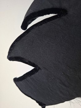 Elegant black fascinator with decorative feathers and velvet trim. Designed to be worn as a statement headpiece. Includes a stretchy under‑chin band to keep the hat in place. Stunning, unique party hat from decades ago. The hat has an asymmetrical, striking design. Atelier‑handmade statement piece, which moreover fits everyone because the size is free: the hat sits on the head and stays in place thanks to a thin elastic band. Flawless condition. Check also my other listings, package prices possible! Please do not make outrageously low offers, thank you!