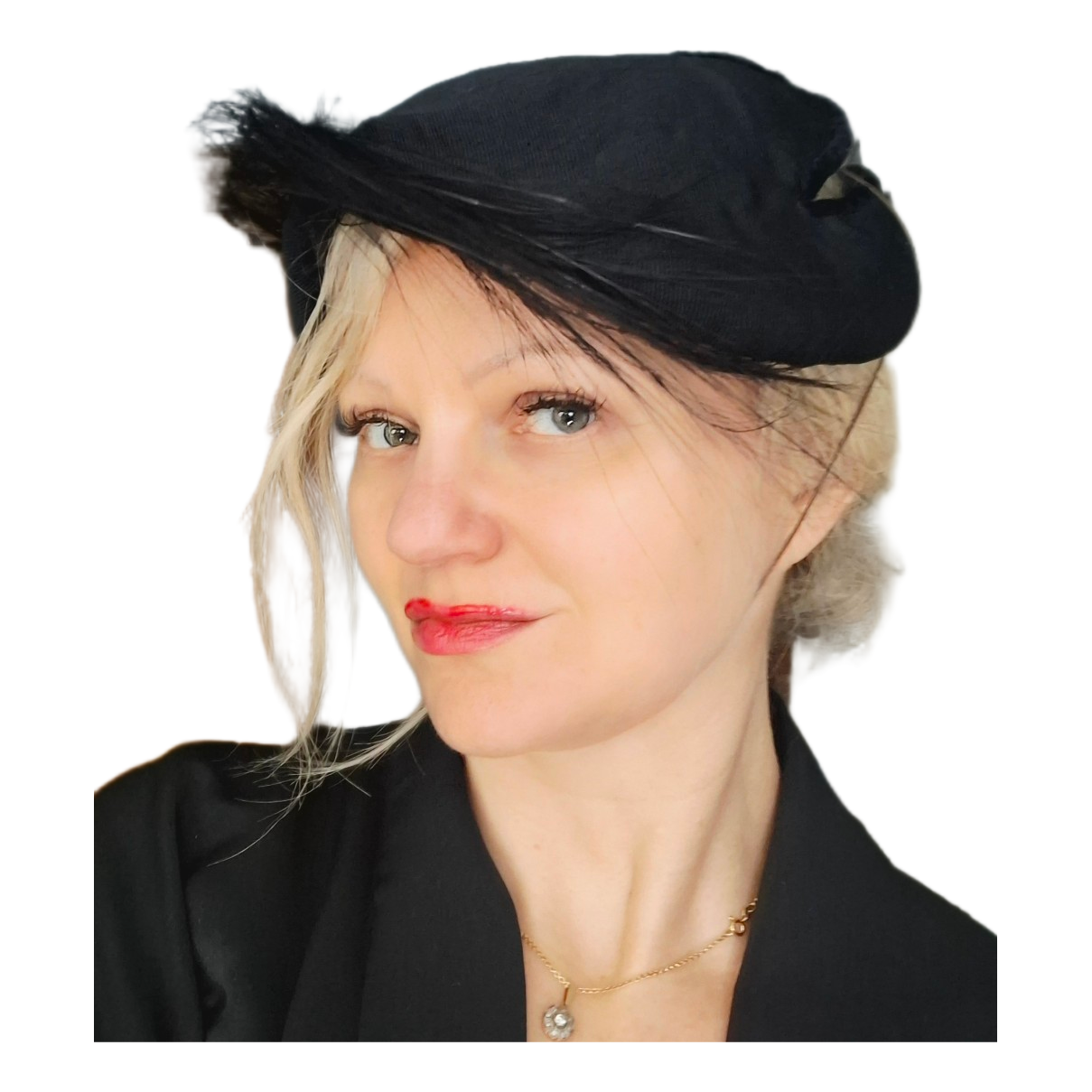 Vintage unique black feathered festive hat