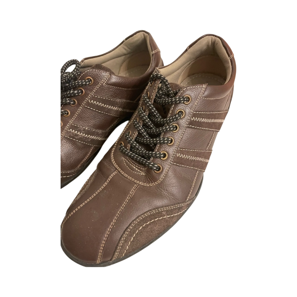 Men's brown lace-up shoes. I cannot think of anything noteworthy about the condition. Used, but in good condition.