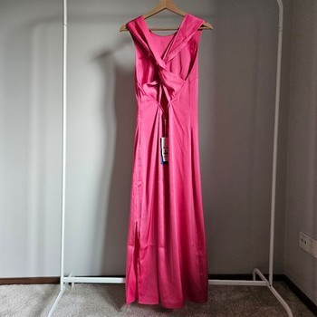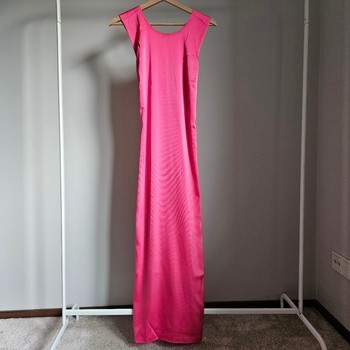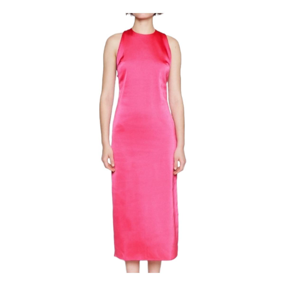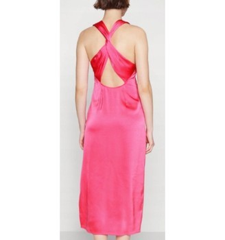 💗 Brand new and unworn Samsoe Samsoe Scilla Dress with original tags attached. Elegant full-length slip dress with a beautiful satin-like sheen and striking open back detail. Bright pink / fuchsia shade that stands out beautifully and is perfect for special occasions.