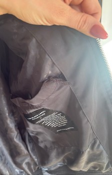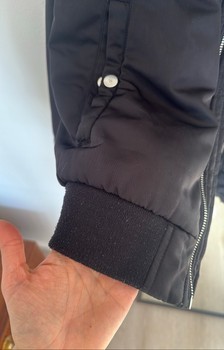 Light padded jacket. I have worn it as size S as a loose fit, I am 163 cm tall. The ribbing has some pilling and the inside pocket is tearing.
