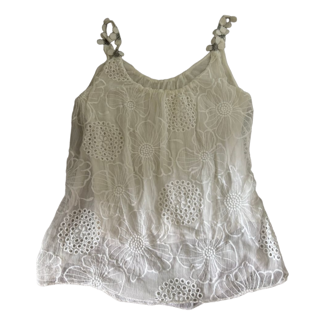 White sleeveless top with flower-themed embroidery. The straps have flower decorations. Y2K 2000s Tise: _ria_ Vinted: pikkumyy112
