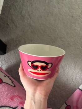Light pink Paul Frank bowl with a monkey pattern. Y2K 2000s. Tise: _ria_. Vinted: pikkumyy112