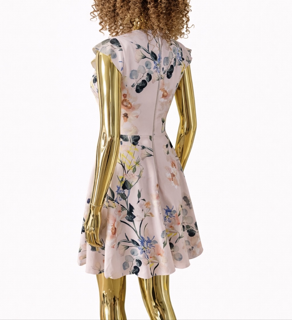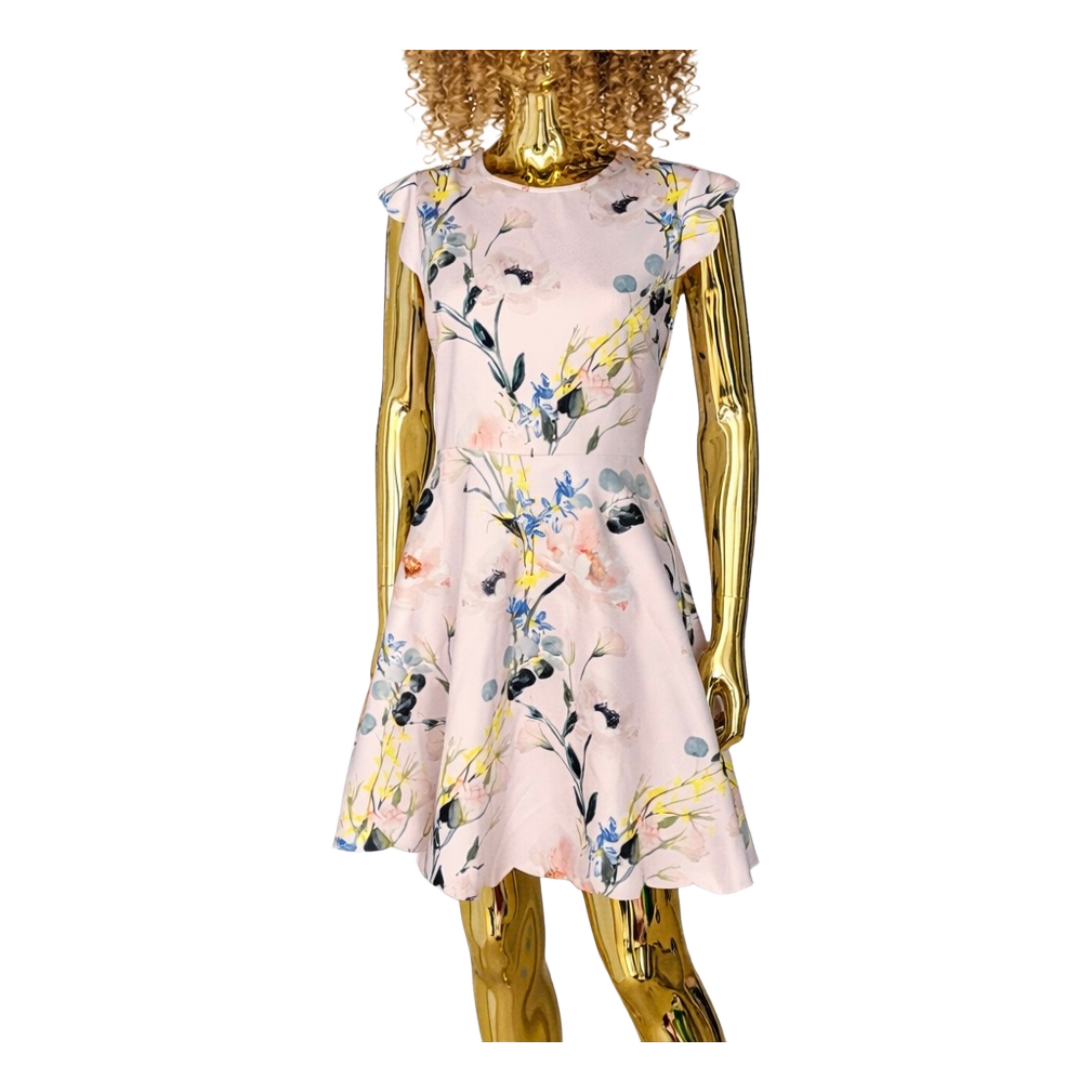 Floral patterned dress. Short sleeves and zipper at the back. Size 2.