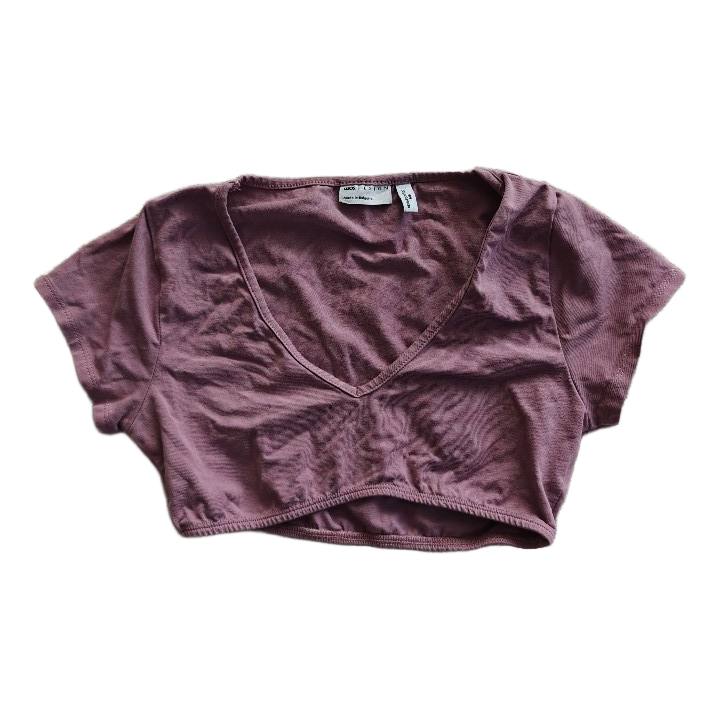 Lilac mini crop top. Size petite M, but corresponds more to XS size. Color appears cooler in person.